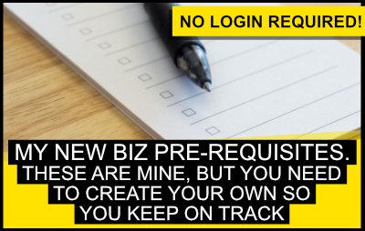 My new biz pre-requisites. | These are mine, but you need to create your own so you keep on track Open to access this content Read More »